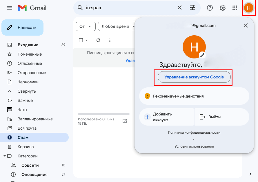 1) Войдите в свою учетную запись Gmail и выберите фотографию или значок своего профиля.