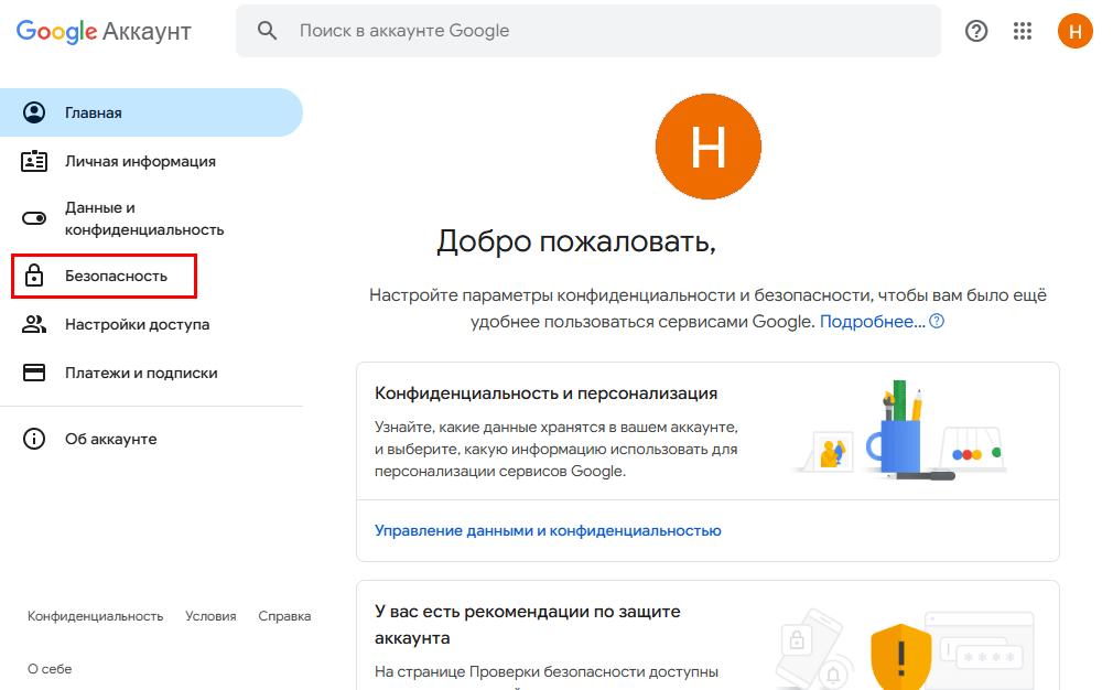 10) На странице "Безопасность" выберете "Вход в Google" -> "Двухэтапнная аутентификация" .