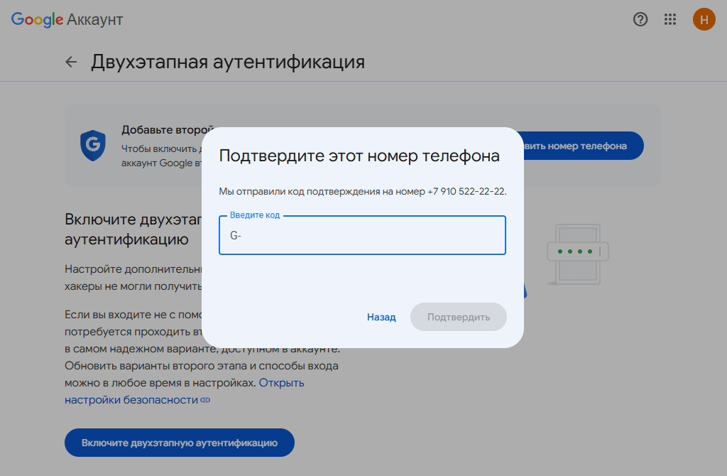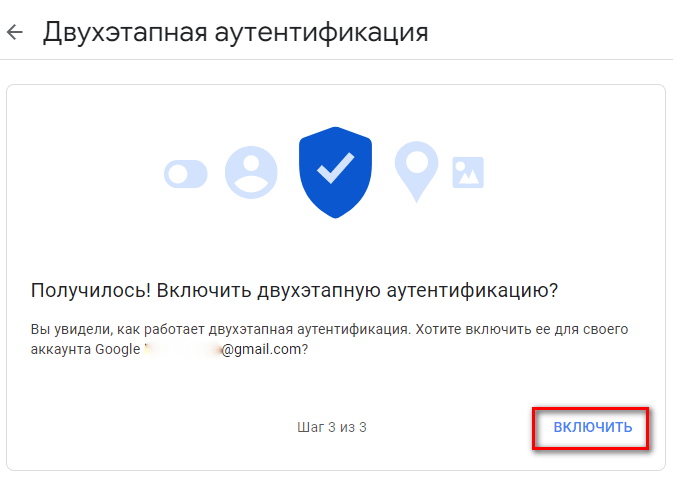 9) Нажмите на Включить, чтобы активировать двухэтапную аутентификацию Gmail.
