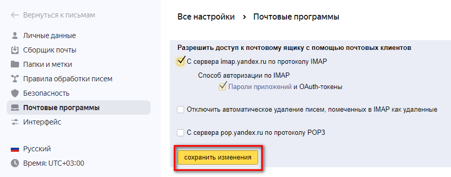 Настраиваем почту YANDEX для приема сообщений с сайта