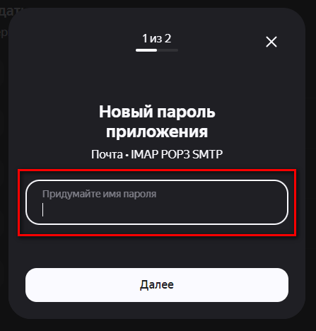 5) В открывшемся новом окне придумайте и введите пароль. Нажмите кнопку "Далее"
