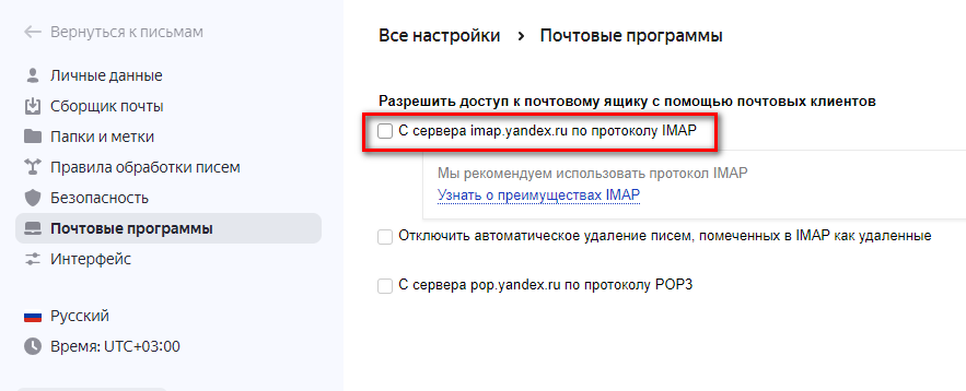 9) Поставьте галочку "С сервера imap.yandex.ru по протоколу IMAP".